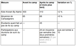 - Nombre d'étudiants et de leaders présents à chaque événement de camp